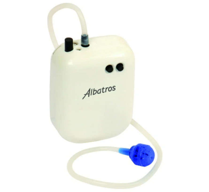 Een luchtpomp compleet met slangetje en bruis steen om het water zuurstofrijk te houden. Batt. 1xD