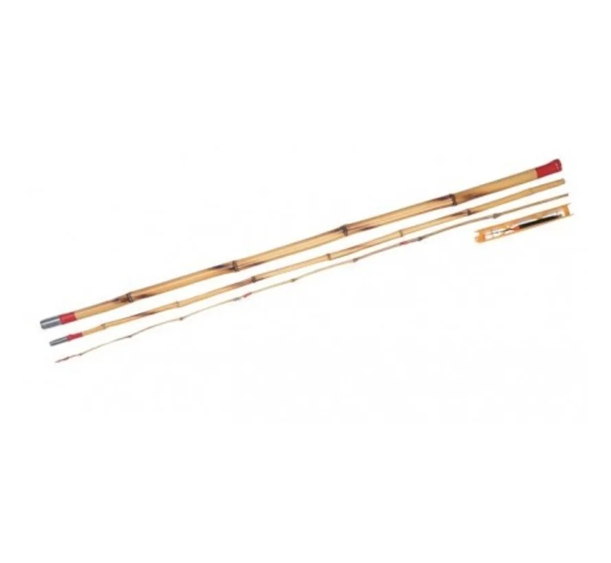 Bamboeset Complete kant en klare hengelset. Bestaande uit een bamboe 3 delige hengel en een goed afgesteld tuig. Alleen nog wat brood of made aan de haak en vissen! met een lengte van 3 m en 3 delig!.