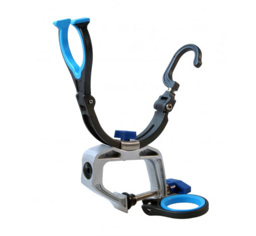 Zeer solide hengelsteun voor op de rand van de boot. Volledig verstelbaar en inklapbaar. De achterste houder scharniert mee. Wordt geleverd met een dichte en half open achterste houder!
