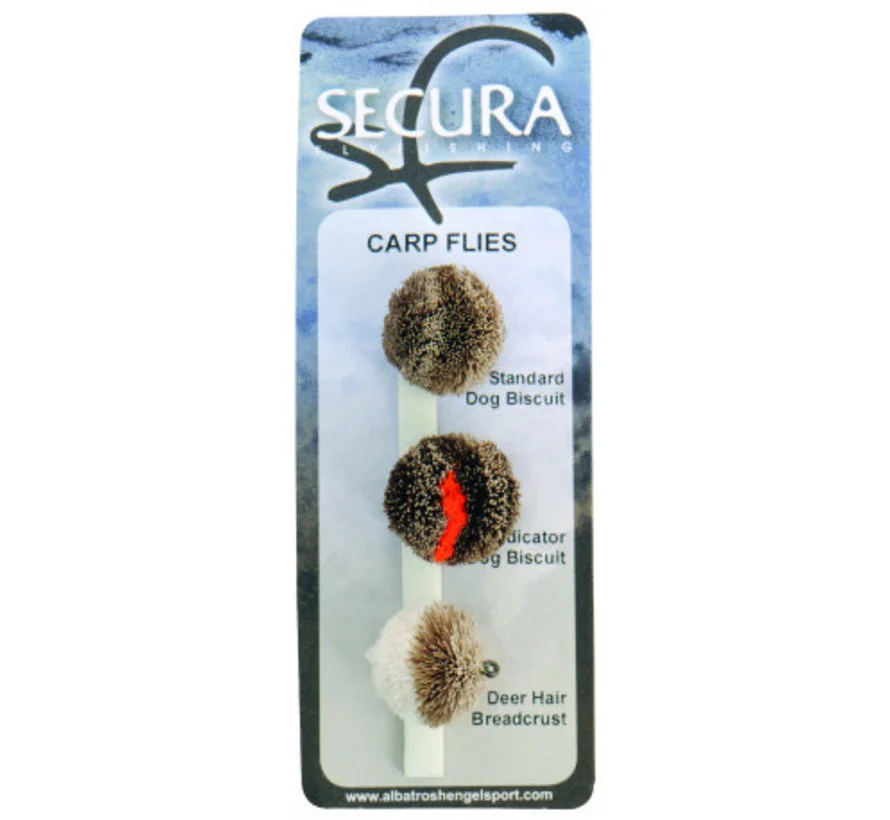 Set van drie karper “vliegen”: Standard Dog Biscuit, Indicator Dog Biscuit en Deer Hair Breadcrust.