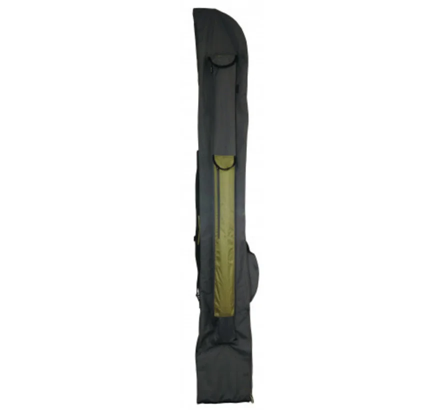Mooi karperfoedraal voor het opbergen van 3 opgetuigde hengels. Voorzien van 2 extra vakken voor rod pod en paraplu. Ritssluiting aan de zijkant die van de boven kant tot het midden van het foedraal loopt. Brede nylon draagriem die versteld kan worden. Formaat: 200x30cm