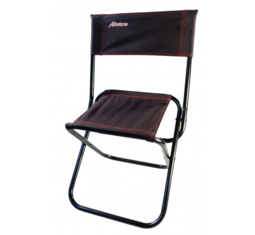 Een stoel met leuning uit 19 mm buis, die uitstekend op een vlakke ondergrond te gebruiken is. Met comfortabele zithoogte van 42 cm.