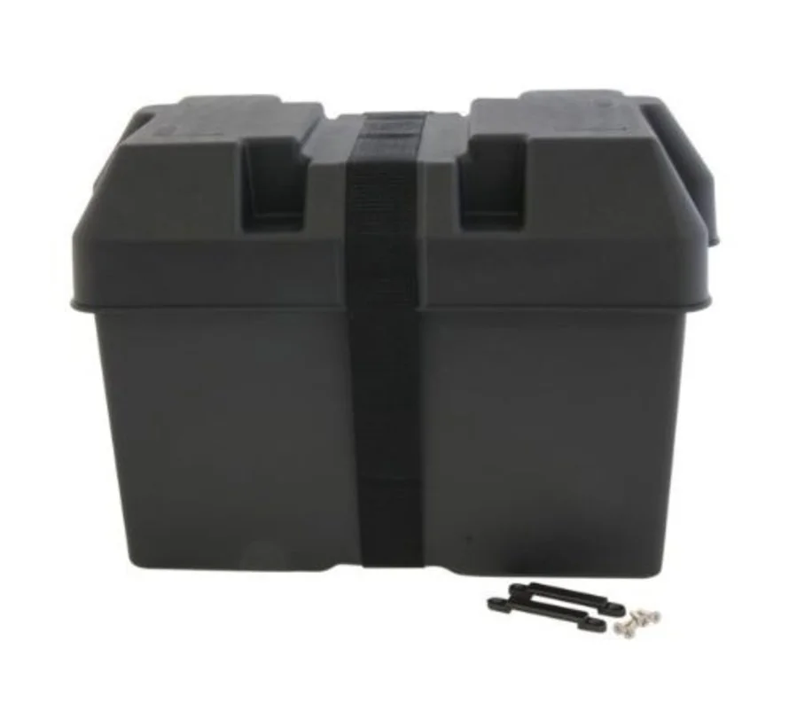 Veiligheidsriem voor accubak. Voorkomt dat de deksel van de accubak er afvalt tijdens transport. Deze veiligheidsriem word exclusief accubak geleverd.